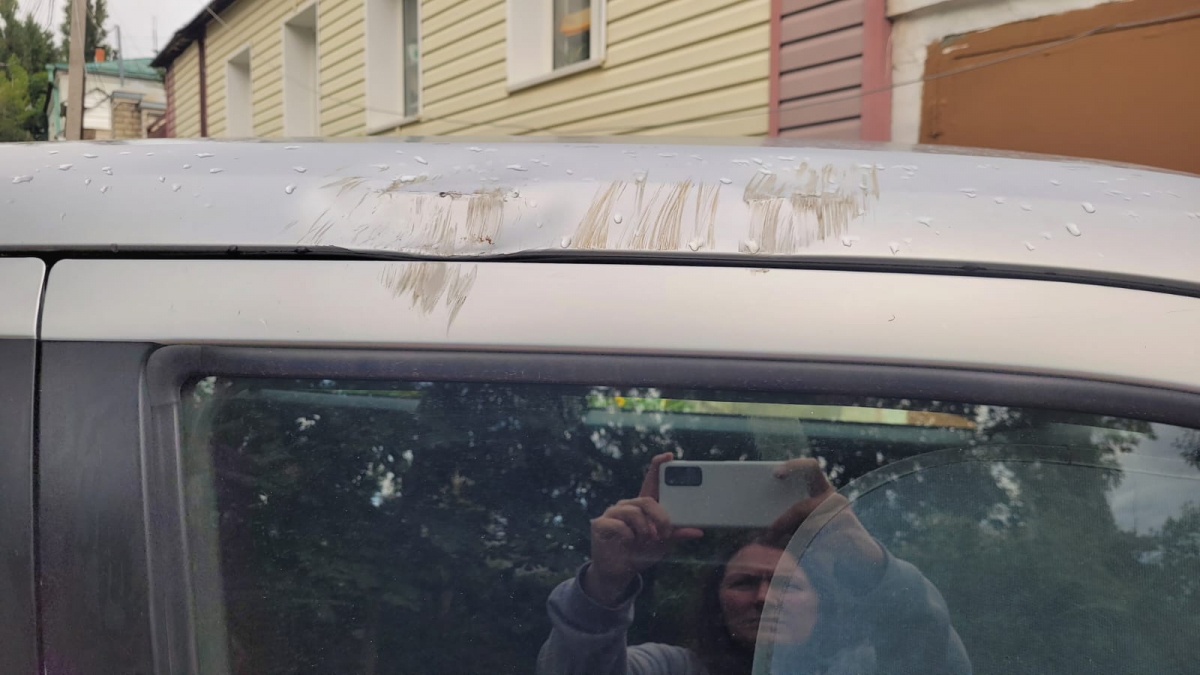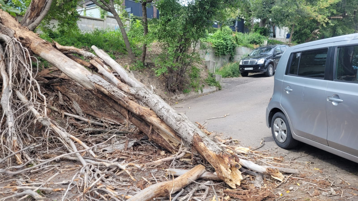 Кроме того, упавшее сухое дерево повредило припаркованный автомобиль. На его крыше появились царапины.