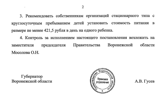 Так, стоимость на уровне 1 тыс 37 руб в день на одного ребенка установлена в организации стационарного типа с круглосуточным пребыванием. В организации нестационарного типа с круглосуточным пребыванием – 843 руб, а с дневным пребыванием – 421 руб 5 коп.