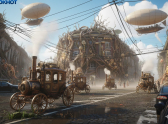 И, наконец, стимпанк — мир пара и шестеренок. К дому добавились латунные трубы, вентили, платформы на кованых опорах и чадящие дирижабли над крышей.