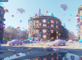 В мире кристаллов фасад и балконы трансформировались в грани гигантских аметистов и кварцев. Солнце, преломляясь в них, заливает окрестности радужными бликами.