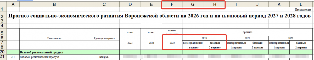 скриншоты из Прогноза социально-экономического развития Воронежской области на 2026 год