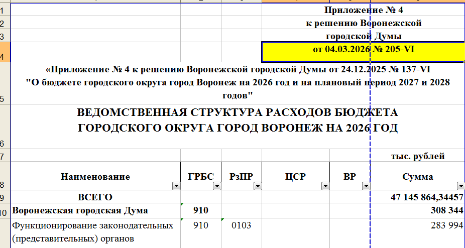 скриншот из Решения Воронежской городской думы от 04.03.2026 №205-VI.