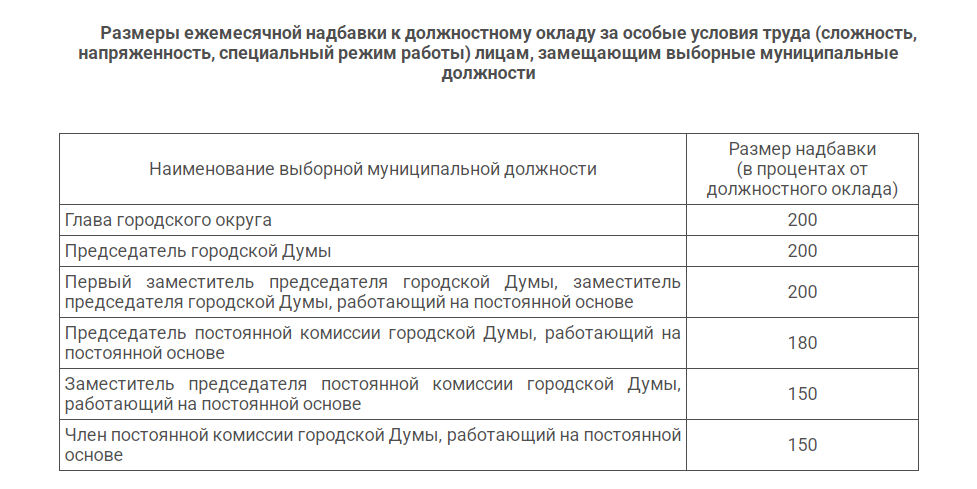В частности, в Положении об оплате труда депутата, выборного должностного лица местного самоуправления городского округа г. Воронеж, принятого в сентябре 2022 года, говорится: размер надбавки (в процентах от должностного оклада) – «За особые условия труда» - для главы города и председателя городской думы, и его заместителя, работающего на постоянной основе, составляет 200 процентов.