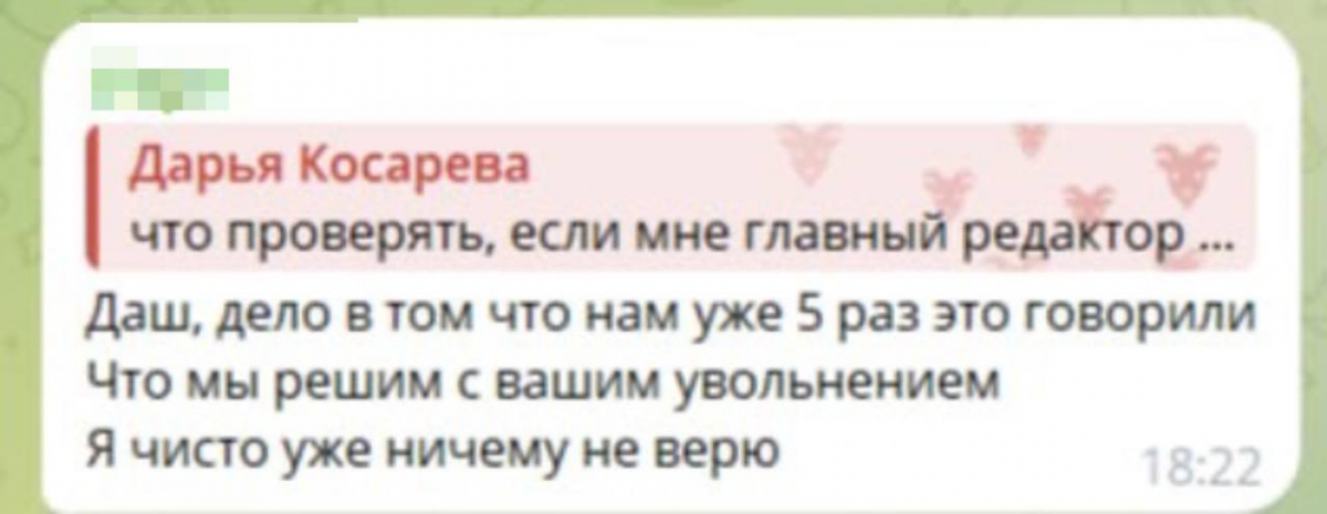 По её словам, в подобной ситуации оказались в первую очередь молодые журналисты, которые сделали первые шаги в профессии именно в этой редакции. Теперь же они фактически заблокированы в трудовой системе.
