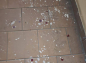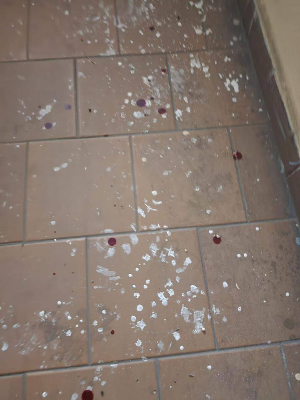 Уже утром жильцы обнаружили беспорядок на лестничных площадках: были разбиты электрораспределительные коробки, повреждено освещение, сорвана входная дверь, испорчено общее имущество дома, а на полу остались пятна крови.