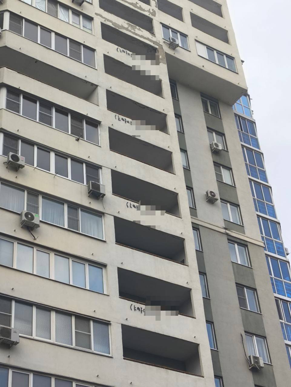Ранее «Блокнот Воронеж» уже рассказывал о похожей ситуации на другой улице города — тогда в одном из домов в ночное время также была повреждена дверь подъезда и можно заметить, что надписи, оставленные на внешней части балкона, одинаковые.