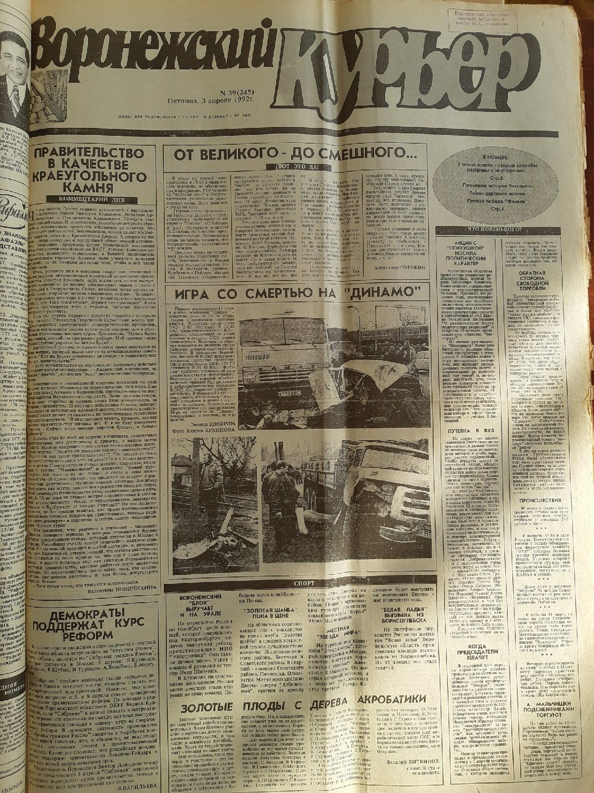3 апреля 1992 года в городской газете «Воронежский курьер» на первой полосе выходило сообщение о жесткой аварии около остановки «Динамо». В те времена дороги столицы Черноземья были гораздо более пустые, чем в наши дни. Кроме того, у местных жителей было гораздо меньше автомобилей. То есть, сообщение о страшном ДТП сильно потрясло Воронеж. К тому же, устроено оно было пьяным водителем легковушки. Столкнулся тот водитель с грузовым ЗИЛом. Вместе с тем, о чудо, автомобилист остался жив. Хотя его транспортное средство и превратилось в груду металла.