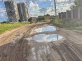 На кадрах с места заметно, что дорога превращается в грязь. А после осадков посреди нее – большие лужи, похожие на мини-озерца.