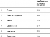 Оказалось, что наибольшая доля «женских» компаний сосредоточена в туристическом бизнесе, а также в сфере красоты и здоровья. Кроме того, бизнес-леди активно занимаются образованием и медициной. Но также в списке есть несколько неочевидных отраслей: например, строительство и ЖКХ.