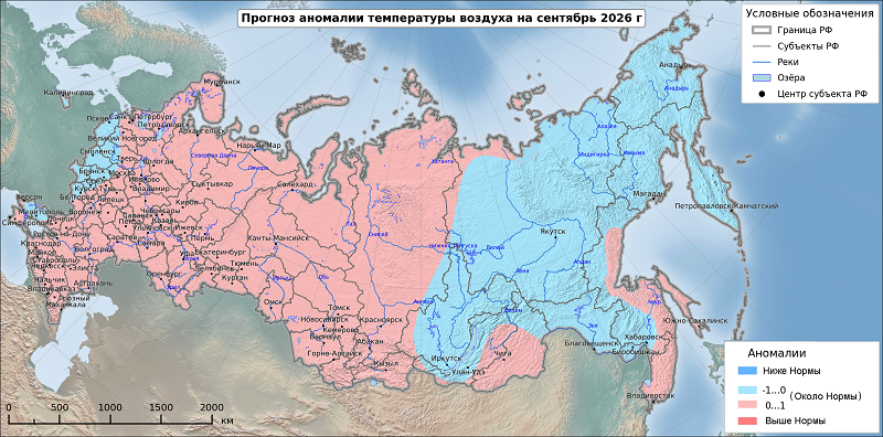 Ну и, наконец, в сентябре мы также в зоне аля чуть жарче, чем должно быть. Плюсом к тому же опять в зоне засухи. При этом зона аномально низких температур будет располагаться не так уж далеко от нас – Курск, Орел, Брянск, Смоленск, Псков. Также в зоне прохлады в сентябре будет весь Дальний Восток.