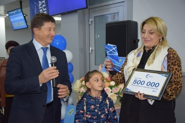 С начала года пассажиропоток международного аэропорта «Воронеж» достиг полумиллиона человек. 500-тысячный счастливчик был зарегистрирован на рейсе «Воронеж — Ереван».