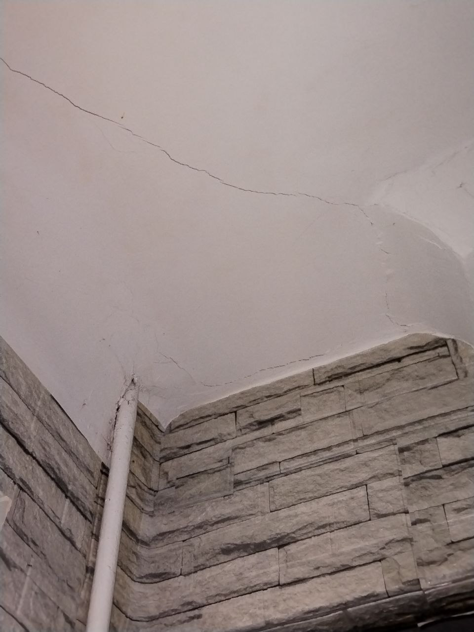 – У меня все потолки в трещинах, отходит несущая колонна! В душе треснула плитка, трещина сквозная, с улицы ее тоже видно! Эксперт не стал фиксировать потолки и эти сквозные трещины! В моей квартире провалился пол, по всей квартире шатаются половицы, – возмущается женщина.