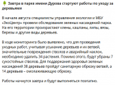 25 августа городское управление экологии сделало объявление в своих соцсетях о вырубке и обрезке деревьев в парке им. Дурова, который находится у здания цирка. Чиновники хотят вырубить 41 одно дерево, из которых 34 – зеленые, и обрезать еще 52 дерева из которых 14 – кардинально и сильно.