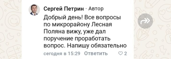 Любопытно, что транспортной проблемой «Лесной поляны-3» заинтересовался мэр Сергей Петрин. Глава города написал собственникам в соцсетях, что уже дал поручения подчиненным проработать вопрос запуска автобуса до жилого массива.