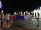 Участники патриотической акции проехали по центру города: по Московскому проспекту, улицам Плехановской, Кольцовской, 20 лет Октября, Вогресовскому мосту.