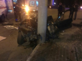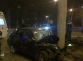 В Воронеже ночью на Ворошилова автомобиль протаранил фонарный столб