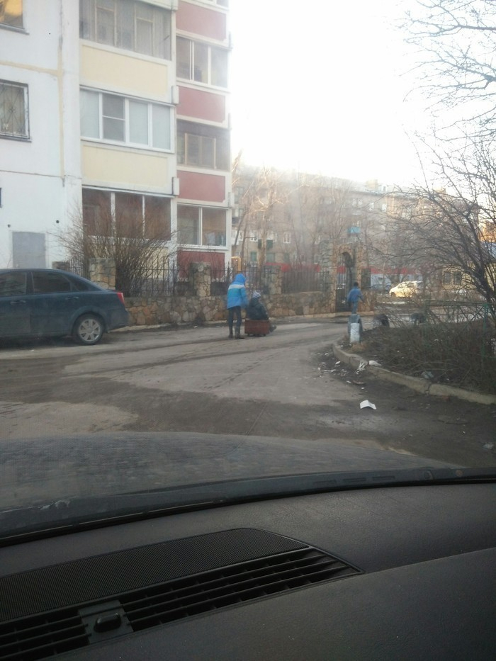 Трое юных гонщиков-экстремалов где-то раздобыли старый пуф на колесах и решили устроить "покатушки". Фото веселящейся ребятни опубликовал пользователь Pikabu под ником codex81.