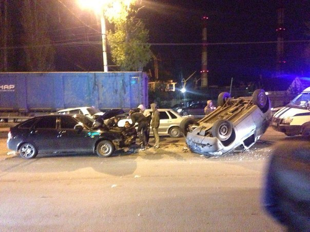 От удара «Жигули» отбросило на полосу встречного дорожного движения, где он столкнулся с «шестеркой». Этот автомобиль, в свою очередь, кинуло на попутно едущий КамАЗ с полуприцепом «Тонар». А после этого ВАЗ-21061 врезался в «пятнадцатую», которая ехала от Ленинского проспекта в сторону улицы Новосибирской. Также произошло столкновение автомобиля «Лада Приора» с «Нивой Шевроле», которая и спровоцировала массовую аварию.