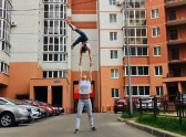 В одном из дворов Северного микрорайона сфотографировали необычное развлечение двух девушек. Одна из них подняла подругу на вытянутых руках. Девушки держали друг друга за руки, и красавица сверху исполняла гимнастические фигуры.