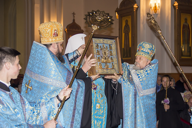 Делегация Русской Православной Церкви привезла в Воронеж древнюю святыню - икону Божией Матери «Знамение». По преданию, икону нашел охотник в 1295 году в лесу, недалеко от Курска. На кроне дерева лежала святыня, а когда он ее поднял, то на месте, где была икона, забил родник. В 1597 году святыню перенесли в Москву, но уже в 1615 чудотворный образ вернули на Курскую землю. После икона побывала в Сербии, Мюнхене и Нью-Йорке. Лишь в 2009 году она вернулась на русскую землю.