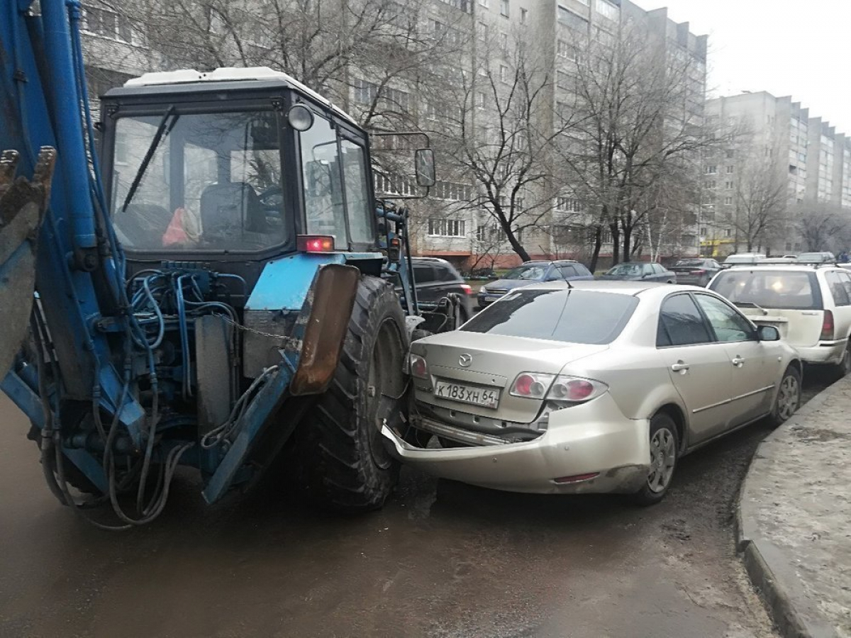 В Воронеже трактор раскурочил «Мазду» мастера парковки