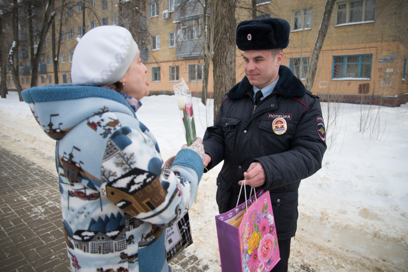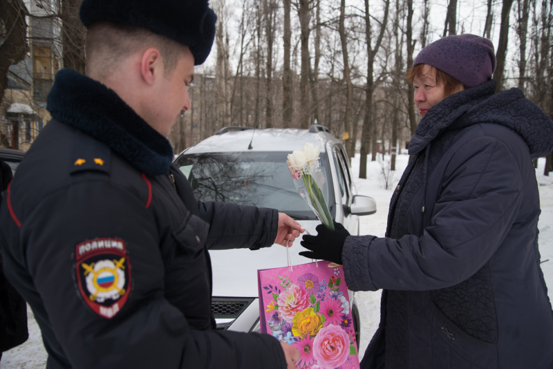 Женщинам дарили цветы и напоминали, что они всегда могут положиться на своих участковых, а также рассказывали, как соблюдать правила безопасности, чтобы не стать жертвой злоумышленников.