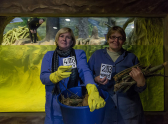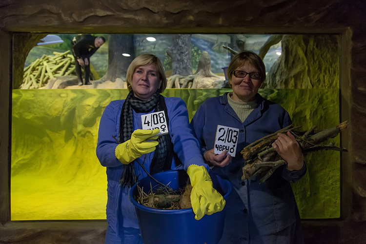 С соблюдением всех мер предосторожности бобров — чёрного самца 2003 года рождения и бурую самку 2008 года перенесли в аквариум. Для адаптации этим замечательным грызунам потребуется некоторое время. Будем надеяться, что новоселам понравиться в новом жилище.