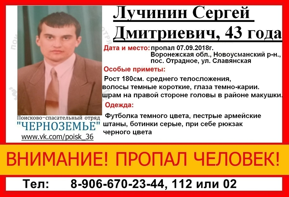 Сергея Лучинина в последний раз видели в поселке Отрадном.