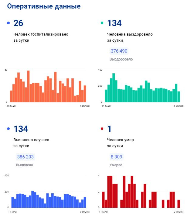 При этом произошло резкое падение числа выздоровлений. Если за минувшие сутки справиться с болезнью удалось 134 местным жителям, то днем ранее их было гораздо больше – 228. На сегодняшний день переболели и выздоровели 376 490 местных жителей.