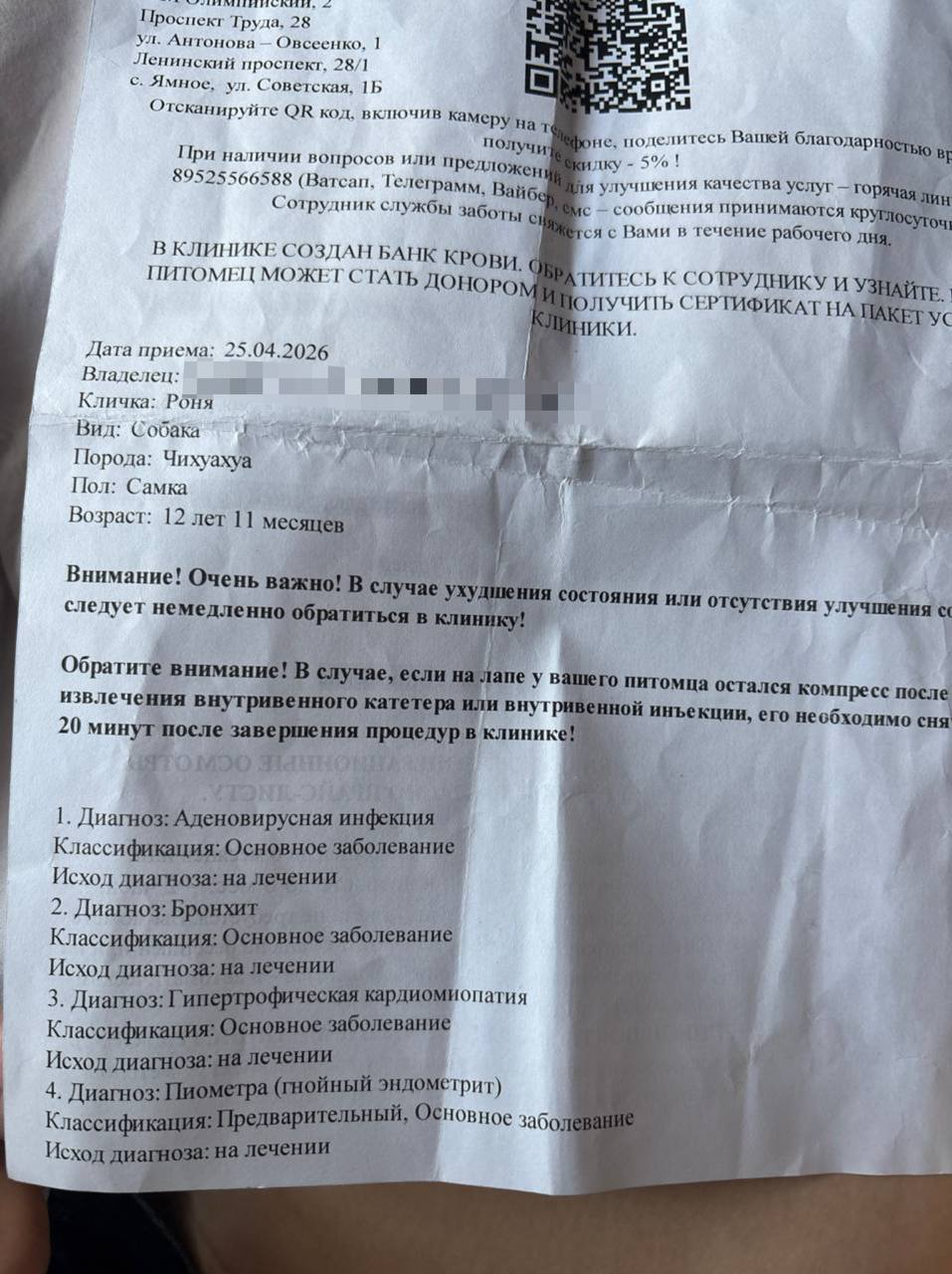 А 13 лет для чихуахуа - не критичный возраст. Сама хозяйка признается, что ее разрывает чувство вины - в документах везде написано «предварительно», но в клиниках нагнетали панику и подталкивали к решению.