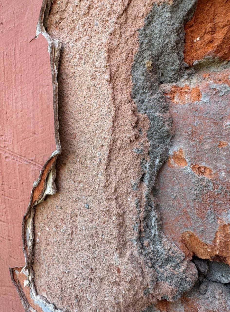 Во время проведения работ «Культреставрация» провела зондаж на фасадах Дома офицеров. При работах обнаружилась штукатурка светло-розового цвета. Были частично раскрыты поверхности фасадов от поздних отделочных и окрасочных слоев. Специалисты узнали о характере отделки и применяемых материалах на фасадах в разные строительные периоды существования объекта.