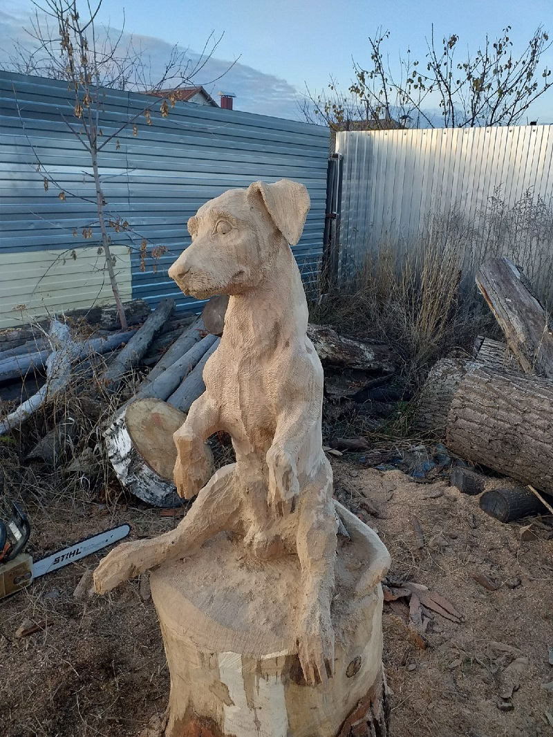 Воронежец Александр Ивченко, который занимается созданием деревянных скульптур при помощи бензопилы, показал поклонникам своего творчества новую работу. На этот раз мастер выпилил фигуру собаки. Ее прототипом послужил пес по кличке Шалфей.