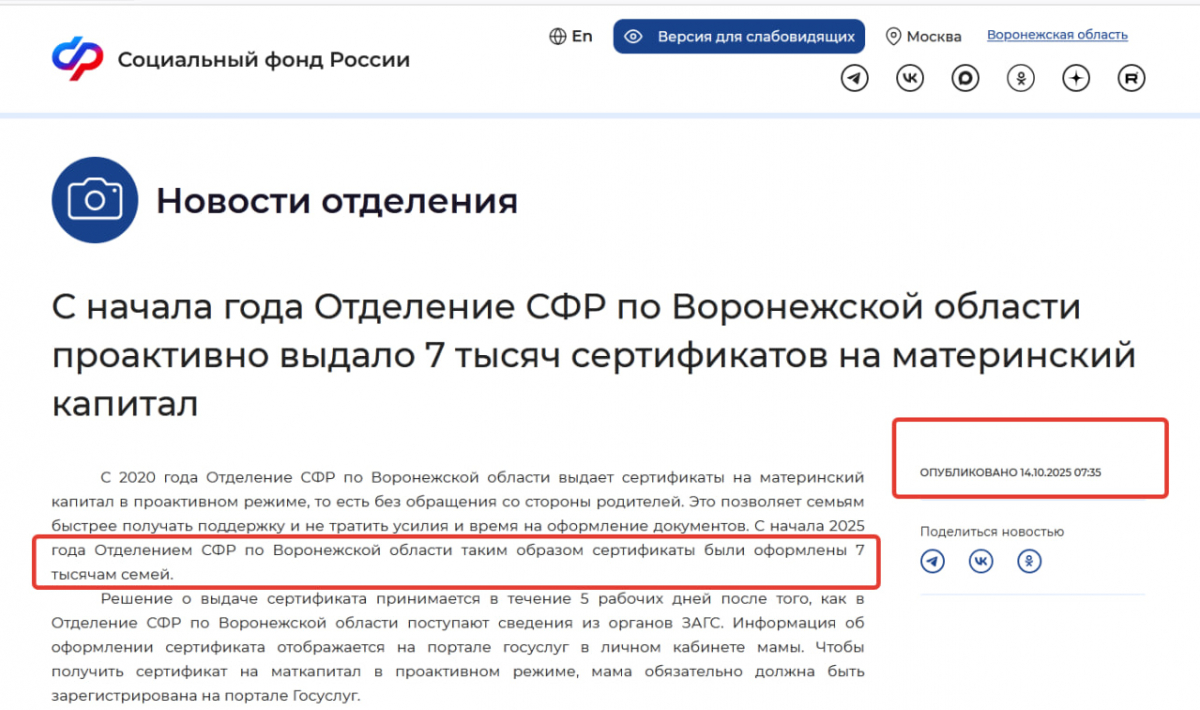 Получается, что за первые полгода 2024 года органами областного ЗАГС было зарегистрировано больше актов рождения детей (7807), а за 9 месяцев, январь – сентябрь 2025 года, было проактивно (то есть - "автоматом", без ожидания заявлений родителей) выдано 7000 сертификатов на материнский капитал Социальным фондом РФ по Воронежской области. Разница за год 6 месяцев прошлого года к 9 месяцам текущего года может составлять - между выдачей актов рождения малышей и выдачи сертификатов на материнский капитал - примерно 3000 малышей или в среднем "квартальный план".