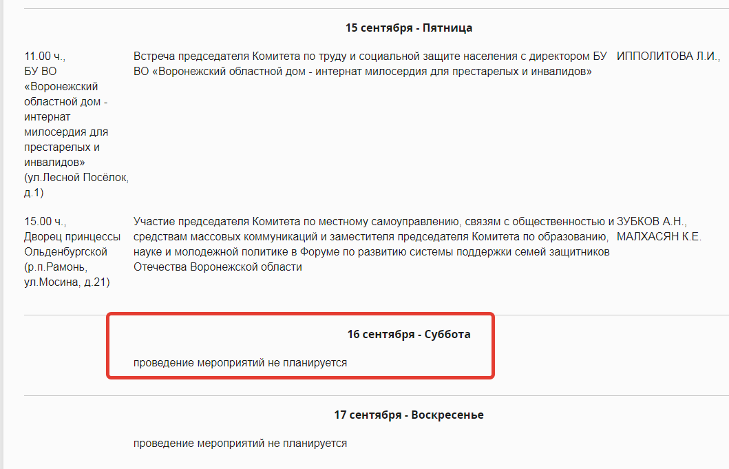 скриншот сайта облдумы, ее депутаты даже не планировали проводить в субботу внеочередное заседания и смотреть инаугурацию Гусева
