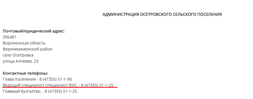 Номер, по которому можно дозвониться до столь добродушной чиновницы, мы подчеркнули красной линией: