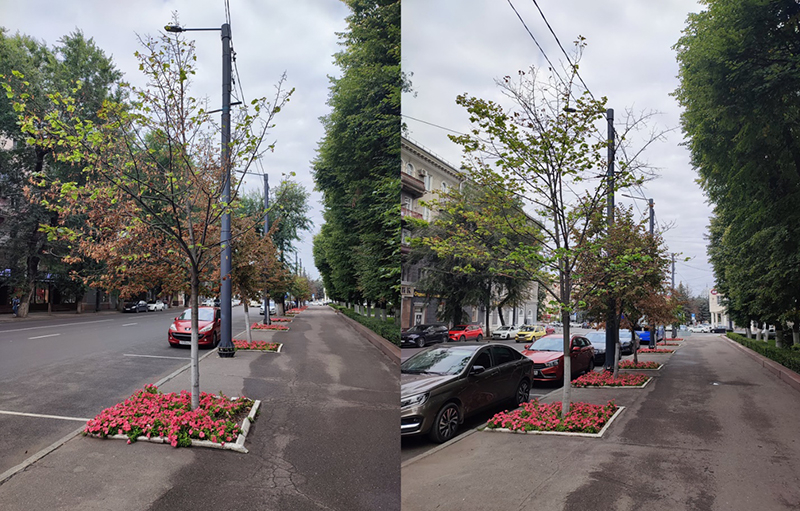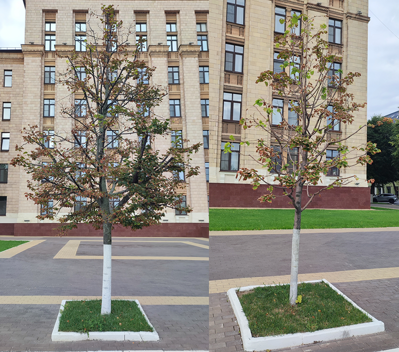 К сожалению, за все это время так ничего и не было сделано: не проведены мероприятия по лечению и повышению жизнеспособности растений, не сделали даже самое простое - замену на новые деревья. Можно понять, когда у губернатора нет времени самому проехать по городским улицам и посмотреть, что там твориться с озеленением, но неужели он не видит, что происходит вокруг здания, куда он каждый будний день ездит на работу? Это очень грустно.