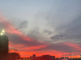 Небо окрасилось в розовые, красные и фиолетовые оттенки, которые было видно из всех частей города. Если вдруг вы пропустили рассвет, предлагаем посмотреть на кадры от наших читателей.