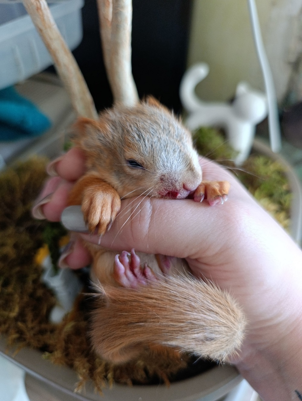 К записи приложены фотографии, на которых хорошо видно, насколько крошечными выглядят пострадавшие животные - на снимках заметно, что бельчата еще совсем маленькие и беззащитные.