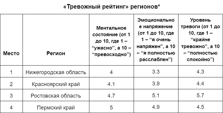 Если говорить о Воронеже, наши земляки в среднем оценили свое ментальное состояние на 5,3 из 10, где 1 «ужасно», а 10 «превосходно».