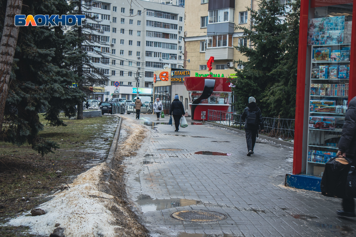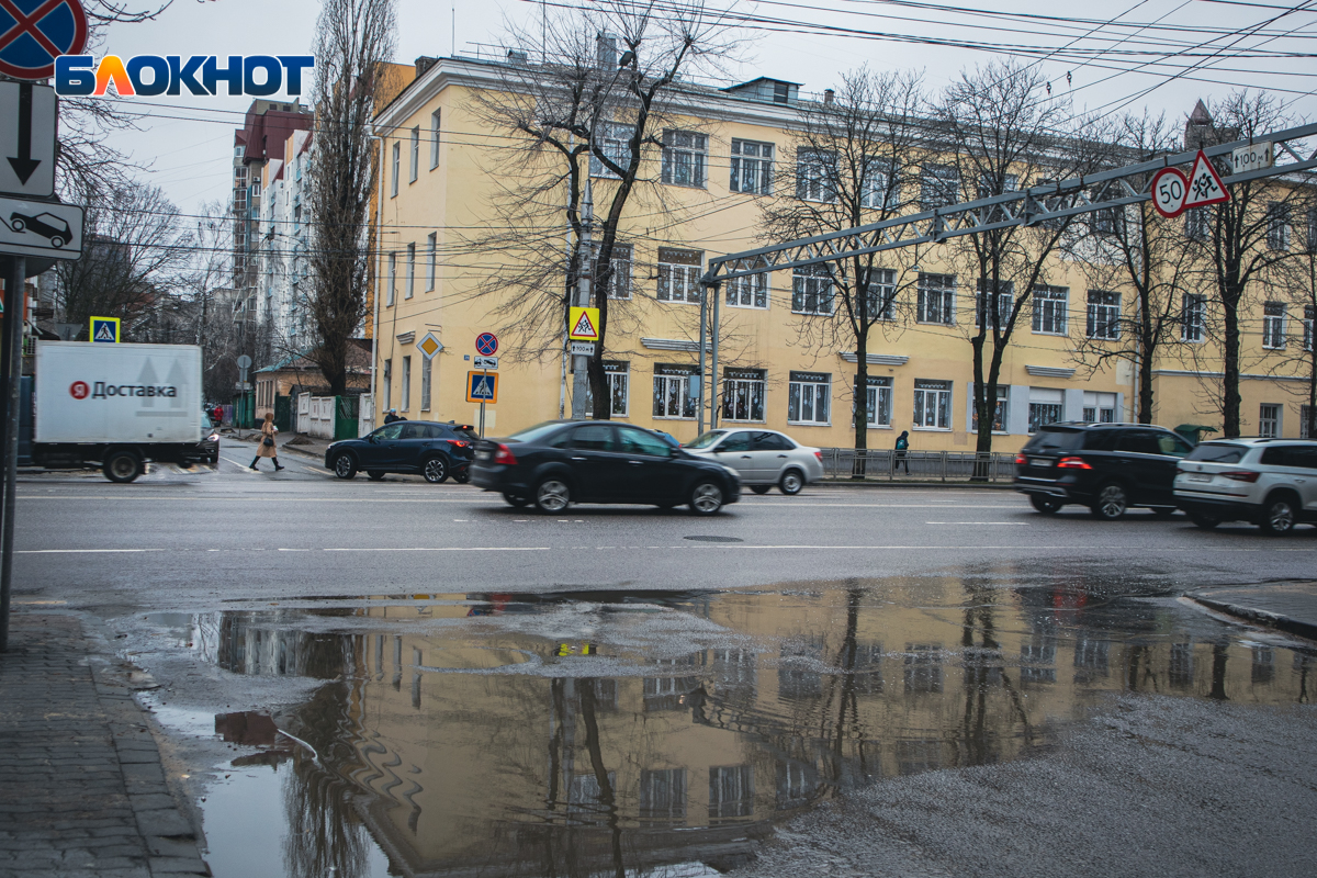 Как городские дороги и тротуары растаяли вместе со снегом запечатлел фотограф «Блокнот Воронеж».