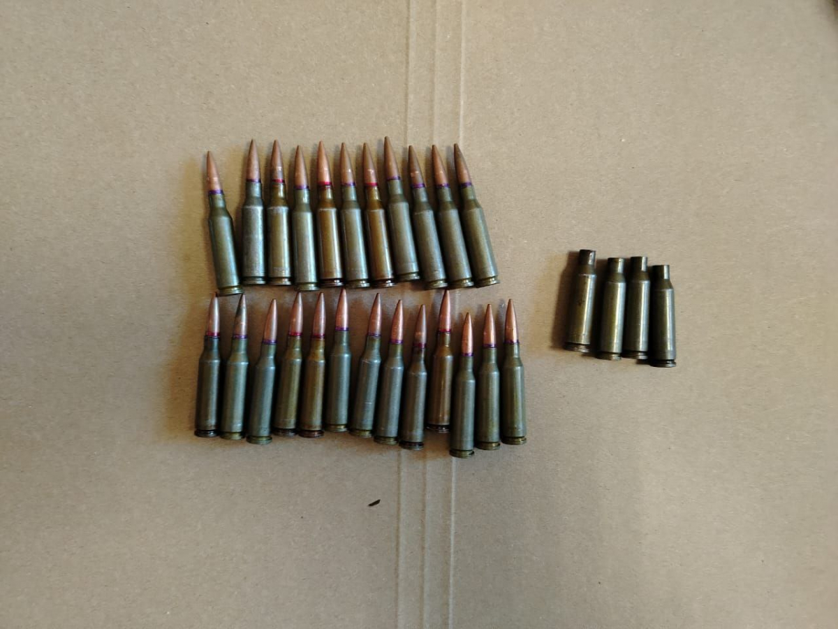 В ходе проверки гаражного помещения стражи порядка обнаружили и изъяли целый арсенал. Всего у мужчины нашли 98 патронов различного калибра. Среди них: 49 боевых патронов центрального боя калибра 5,45×39 мм и 49 винтовочных патронов кольцевого воспламенения калибра 5,6 мм с экспансивными пулями.