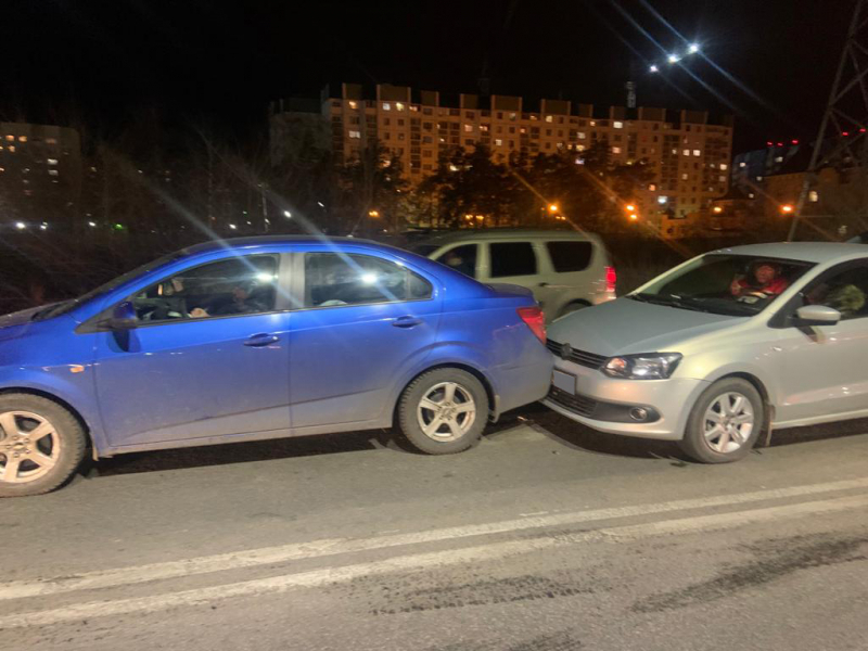 В итоге Toyota RAV4 с 29-летней девушкой за рулем по инерции врезался во впереди идущий Volkswagen Polo, которым управлял 35-летний мужчина. А Polo, в свою очередь, ударился в Chevrolet Aveo. Получился классический такой паровозик.