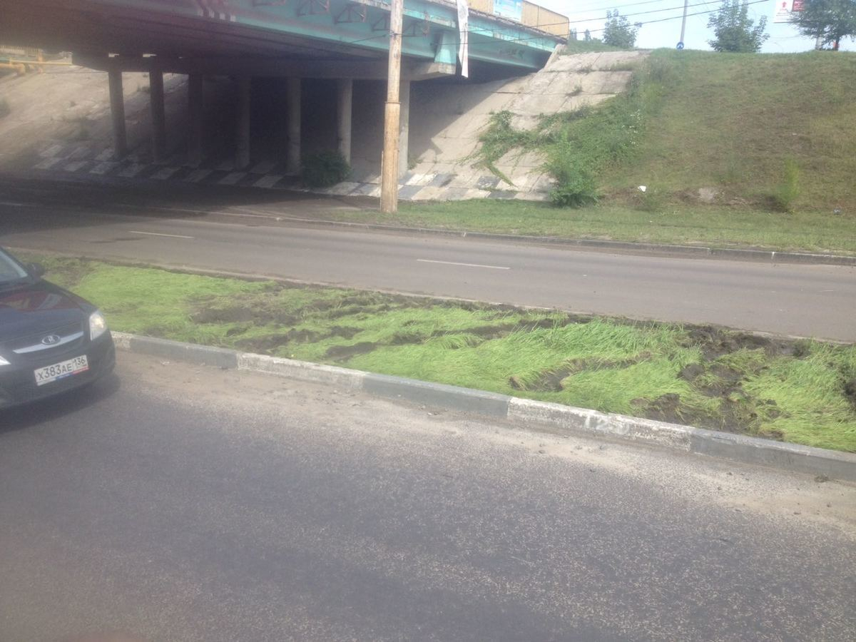 Ленивые водители изуродовали 200 метров газона в Воронеже