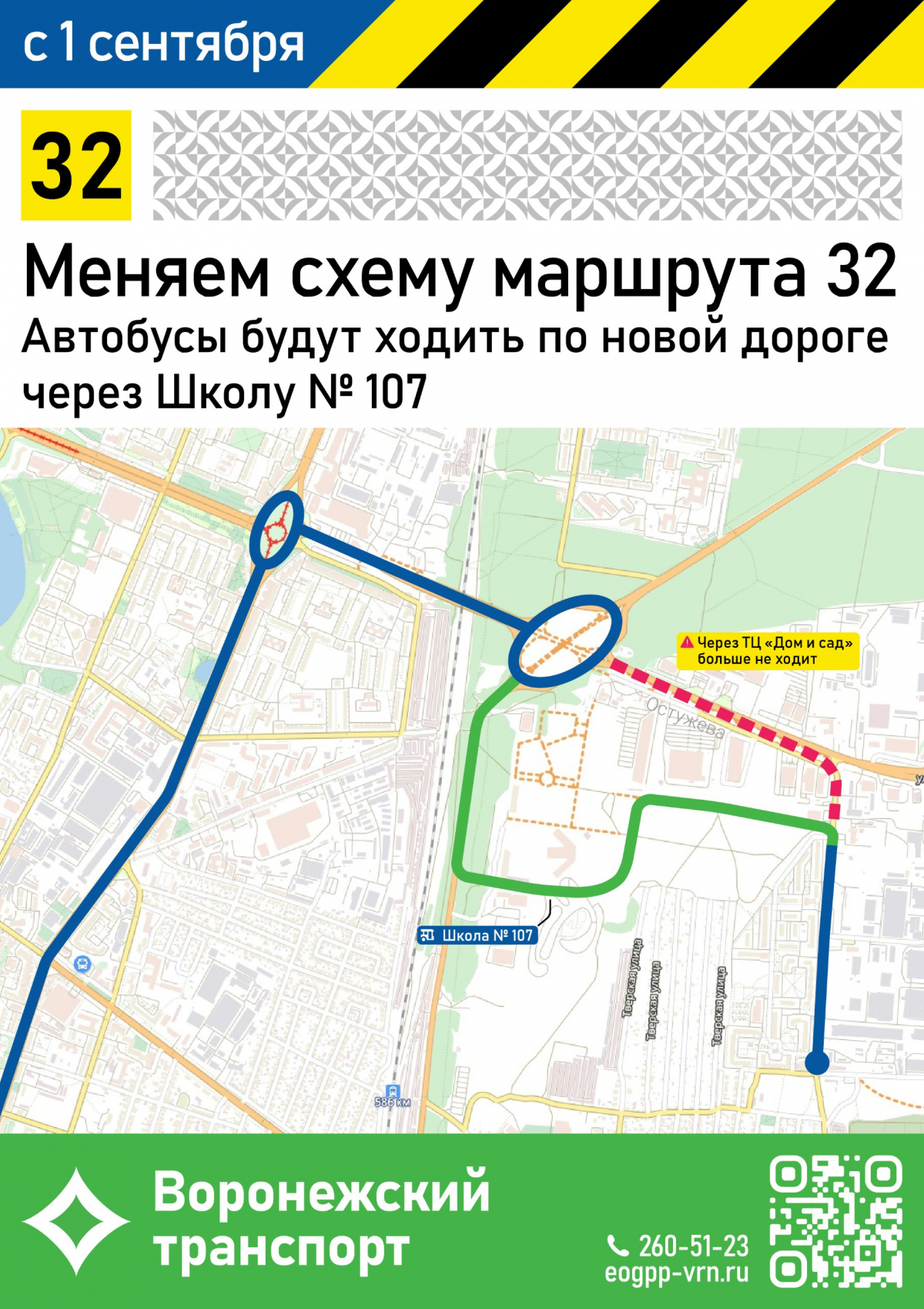 Автобус №32 изменит свой маршрут с начала учебного года в Воронеже. Теперь маршрут начнёт ходить через новую школу №107 в микрорайоне Процессор. Об этом сообщил заместитель руководителя управления транспорта Максим Захаров.