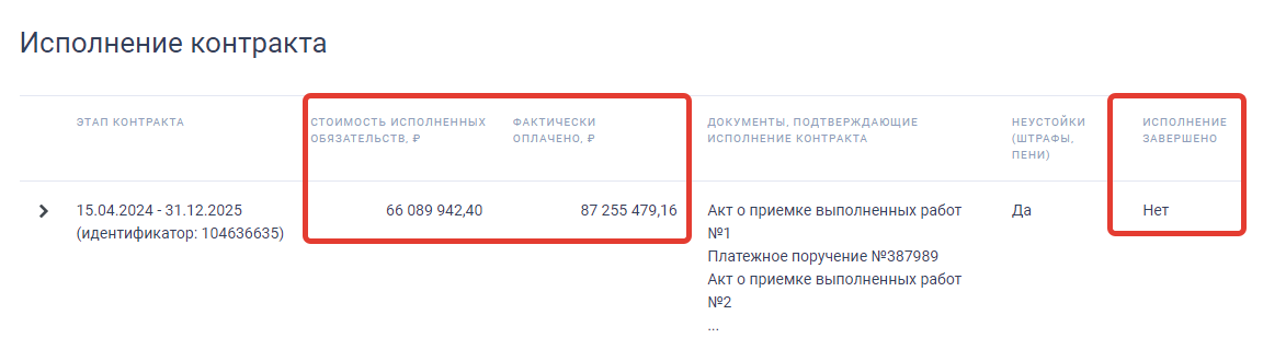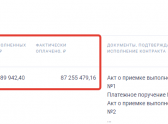 скриншот карточки исполнения контракта по строительству здания поликлиники для Панинской районной больницы