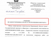 скриншот документа минстроя об одностороннем отказе от исполнения контракта