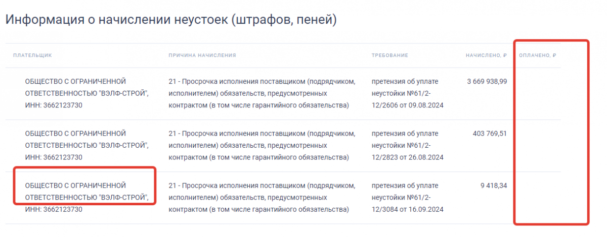 С момента выписки последнего штрафа прошло уже более года, но «Вэлф-Строй» так и не оплатил деньги за предъявленные ему нарушения. Кстати, согласно контракту проведение капитального ремонта на объекте здравоохранения должно было быть завершено еще к 1 февраля 2024 года, а штрафные санкции были применены в отношении подрядчика в августе и сентябре 2024 года. То есть сроки окончания работ были продлены более чем на полгода.