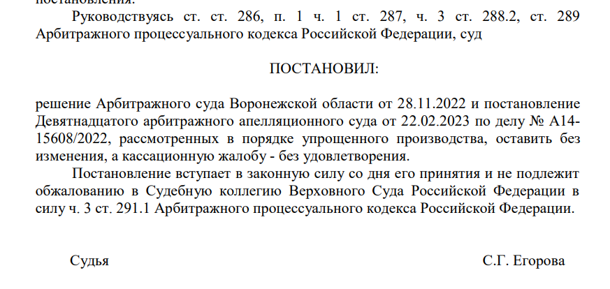 скриншоты из Постановления Арбитражного суда Центрального округа
