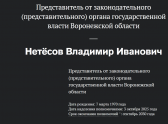 Бывший председатель Воронежской облдумы, а ныне ее представитель в Совете Федерации РФ Владимир Нетесов не совсем обычно приступил к своим обязанностям на посту сенатора. Ему единственному из новичков не вручили удостоверение на заседании, которое состоялось 8 октября. Оно было первым после того, как 3 октября на заседании областной думы ее новый депутатский корпус утвердил (фактически – даже без голосования) кандидатуру Владимира Нетесова в качестве своего представителя в Совете Федерации.