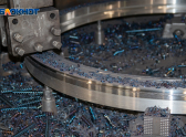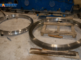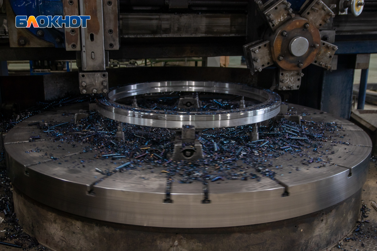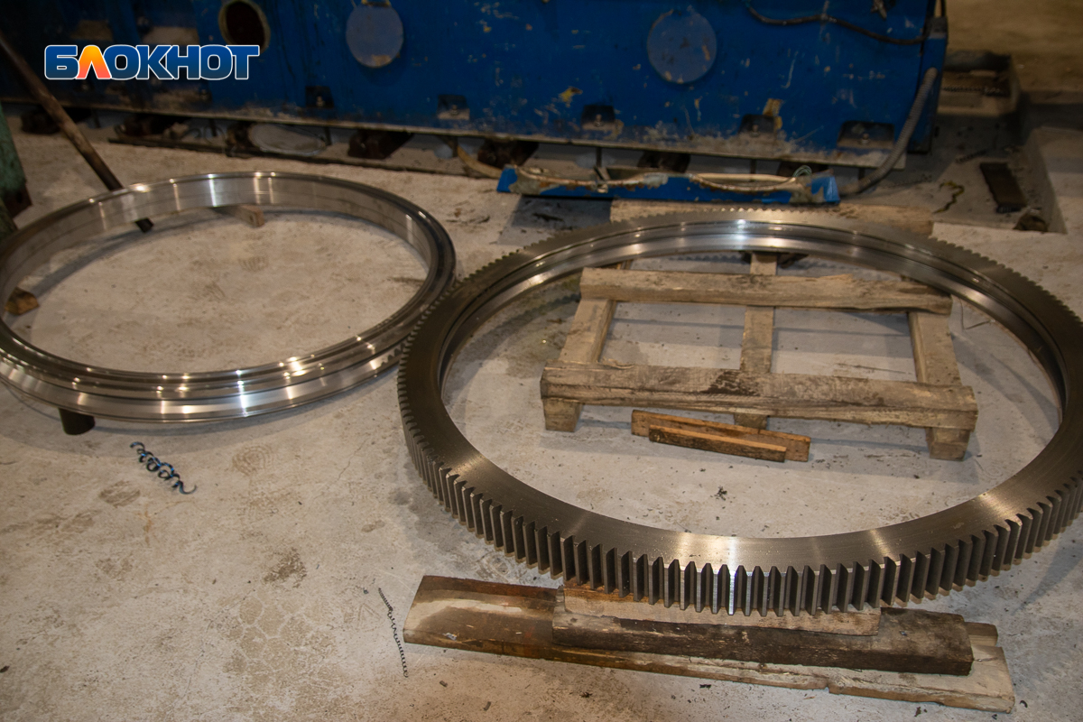 Но то, что для одного проблемы – для другого новые возможности. Главный продукт завода, ОПУ, - это по сути подшипник, такое поворотное колесо, состоящее из зубчатого венца и двухполуобойм, соединненых роликами. Сами изделия могут быть в диаметре от полуметра до двух с половиной - трех метров. Изделие производится с советских времен и считается ремонтнопригодным. В отличие от китайских и европейских ОПУ, у которых одна полуобойма, совмещенная с венцом шариками по принципу подшипника. Чтобы произвести такое устройство требуется десяток последовательных операций на различных тяжелых станках. Разные ОПУ идут на разные типы машин.